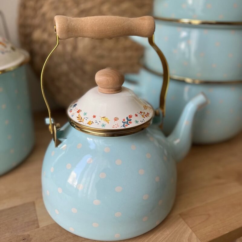 کتری لعابی دسته چوبی ۲.۵ لیتر تیفانی خالدار طرح انگلیش هوم کد_vt4713