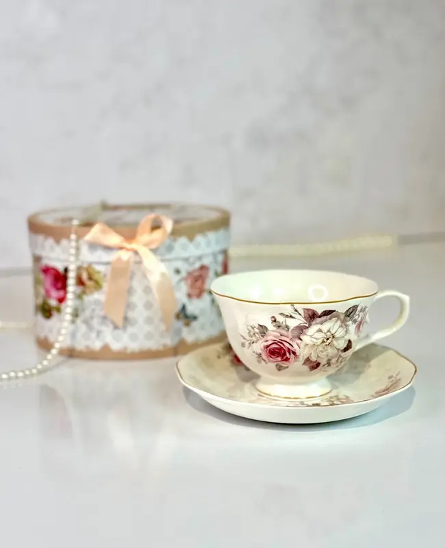 فنجان و نعلبکی چای‌خوری تکی با باکس هدیه وارداتی در ۳ طرح کد _kit1282